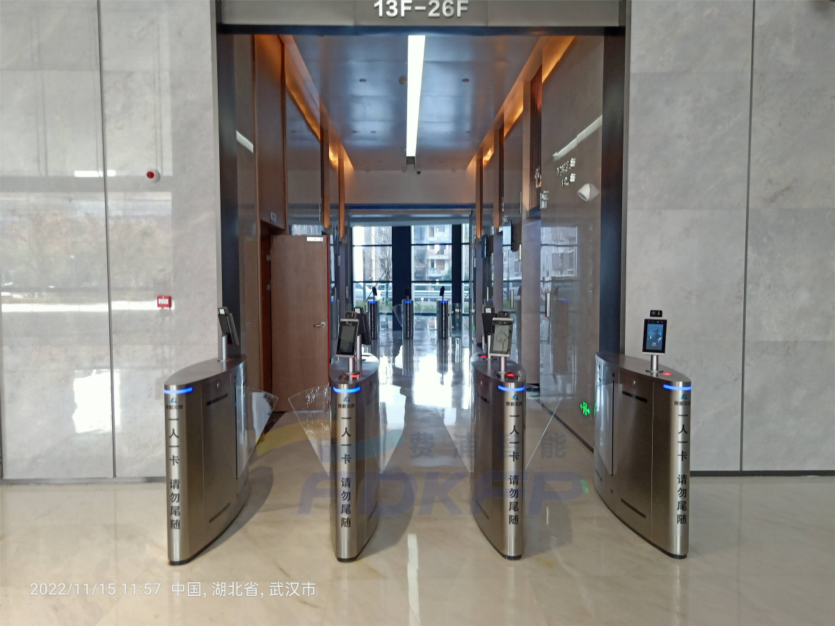 大廈采用費浦"ADKFP"門禁系統,12個人員通道閘機選用費浦ADK-YZ600翼閘,橢圓形外觀,圓滑的曲面加上臺面的線條美,優雅而不失穩重。翼閘電機采用直流伺服驅動技術,使用壽命1000萬次以上,超低噪音,8對紅外檢測,同時具有高效防尾隨,雙重防夾功能,每分鐘通過人數達35人以上。