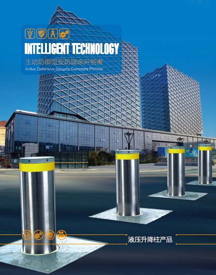 全自動液壓升降路樁系統是采用微型電機通過一個集成閥件的連接塊與齒輪泵和油箱連接,然后與一體化液壓缸裝配而構成一個完整的微型液壓系統,通過結構件將該系統安裝于路障主體的內部,完成了電能->機械能->液壓能的完整轉化過程,真正實現了微型機、電、液一體化。控制方式靈活機動,除常規線控控(即手動按鍵盒)外,可采用近/遠程遙控以及近程刷卡、遠程射頻讀卡控制,并可通過計算機實現程序化控制,適用于高頻度、高安全車輛進出場所。