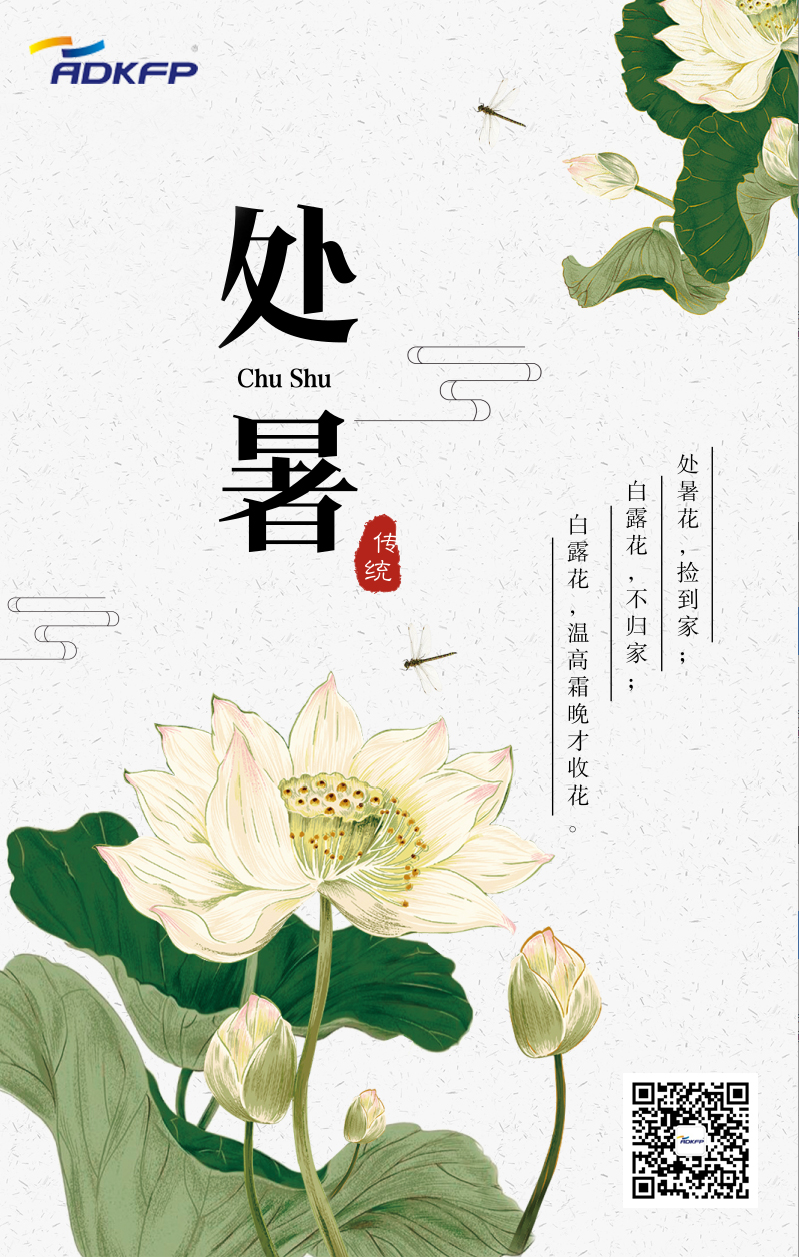 處暑,是二十四節氣之第十四個節氣。斗指戊;太陽黃經為150°;公歷8月22-24日交節。處是終止、躲藏的意思,處暑是表示炎熱的暑天結束。這時三伏已過或近尾聲,白天熱,早晚涼,晝夜溫差較大,不時有秋雨降臨。處暑這一節氣意味著進入氣象意義的秋天。