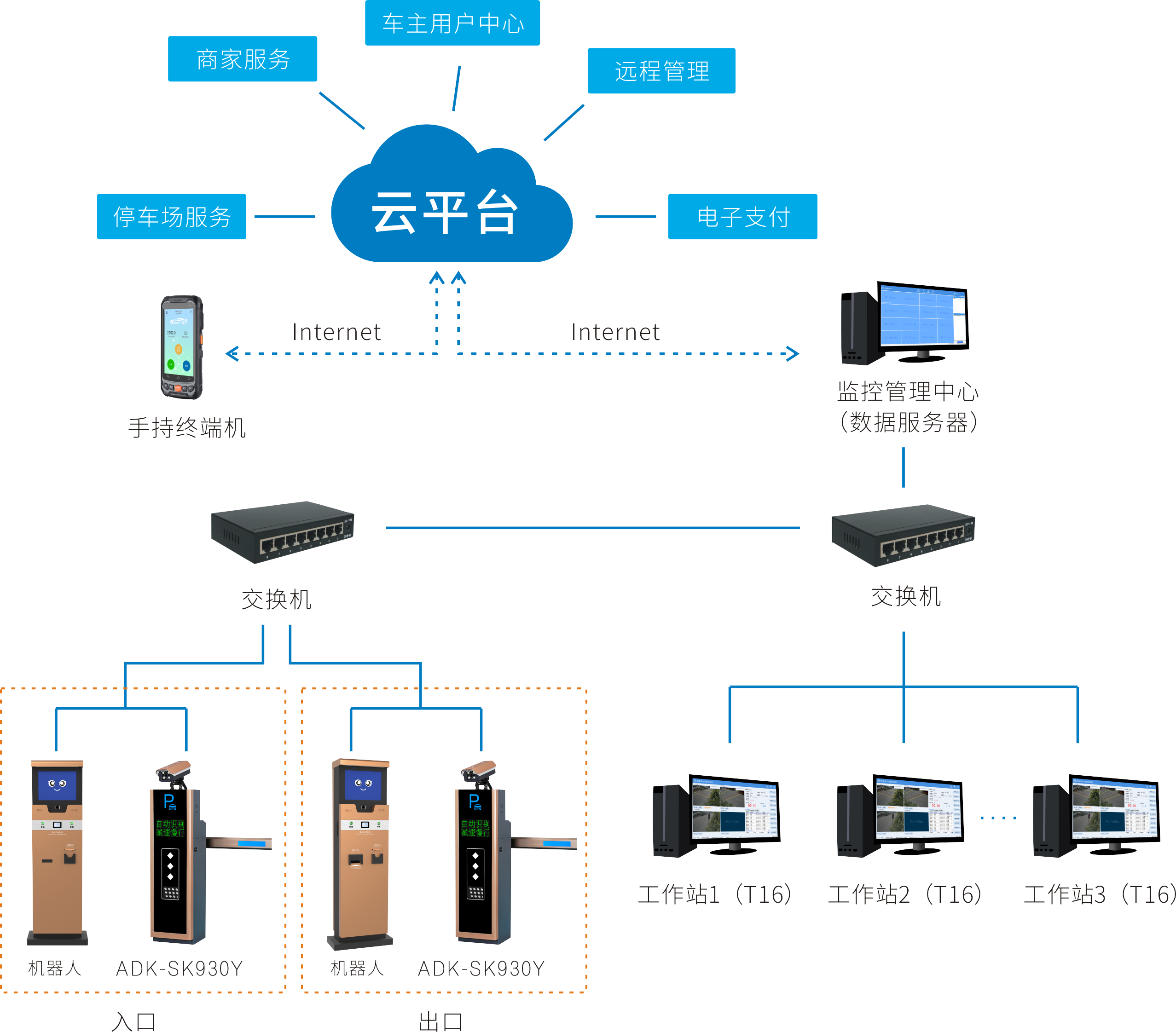 智慧停車系統是以“無人值守、監控中心管理、云端統籌”的系統構建,集先進的車牌自動識別技術、軟硬件融合控制技術、互聯網與電子支付技術以新穎的智慧停車,讓物業/車主輕松享受安全、便捷的智慧管理與通行;通過對現有停車場生態中加入“智慧停車機器人”,使停車場進出通道無需保安的人工干預,車輛依然可以正常進出場(包括無牌車),自動計費,車主自助繳費離場。通過手持終端設備應急處理停電、斷網、設備故障等特殊情況,強化物業對停車場的管控能力,從而增加停車通行效率,給停車場管理人員帶來便利的同時降低人工成本,杜絕收費漏洞。