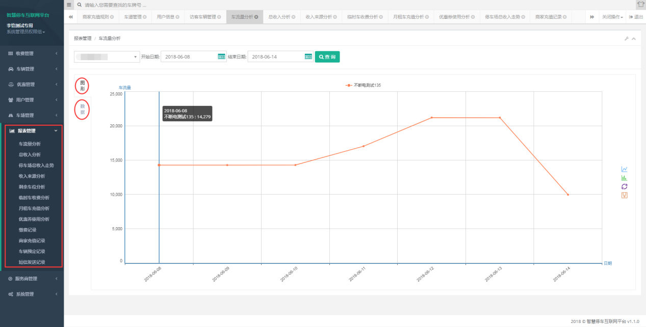 8、系統可提供各類車輛出入場報表、收費報表的查詢,提升停車場的信息化功能,有效統計停車場車流、使用率等信息,便于車場管理單位了解停車場的使用狀況。